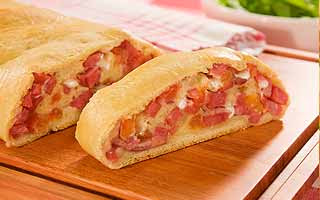 Numa tigela, dissolva o fermento com o açúcar, o sal e o óleo.Incorpore a farinha aos poucos, alternando com 1 xícara (chá) de água morna, misturando para obter uma massa homogênea e lisa.Amasse com as pontas dos dedos, cubra com um pano e deixe crescer até dobrar de volume. Em uma superfície lisa, abra a massa com a ajuda de um rolo e espalhe todo o requeijão.Faça o recheio, juntando os tomates, as azeitonas, o tomilho, o sal e regue com azeite. Espalhe o recheio sobre o requeijão,enrole a pizza como rocambole e pincele a gema. Coloque na assadeira e leve ao forno preaquecido (180 graus) por 25 minutos.